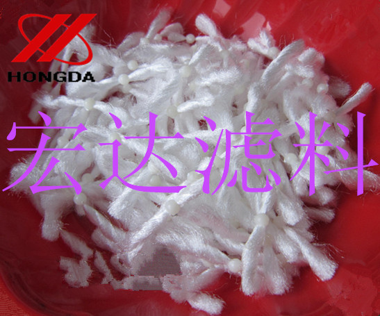 河南宏达滤料有限公司彗星式纤维滤料形象地说即为一颗颗粒状的丝束,象彗星一样拖着长长的“尾巴”,该过滤材料的特点是一端为松散的纤维丝束,又称“彗尾”,另一端纤维丝束固定在密度较大的“彗核”内。过滤时,密度较大的“彗核”起到了对纤维丝束的压密作用,同时,又由于“彗核”的尺寸较小,对过滤断面空隙率分布的均匀性影响不大,从而提高了滤床的截污能力。它既有纤维滤料过滤精度高和截污量大的优点,又具有颗粒滤料反冲洗洗净度高和耗水量少的优点,是一种新型的过滤材料。